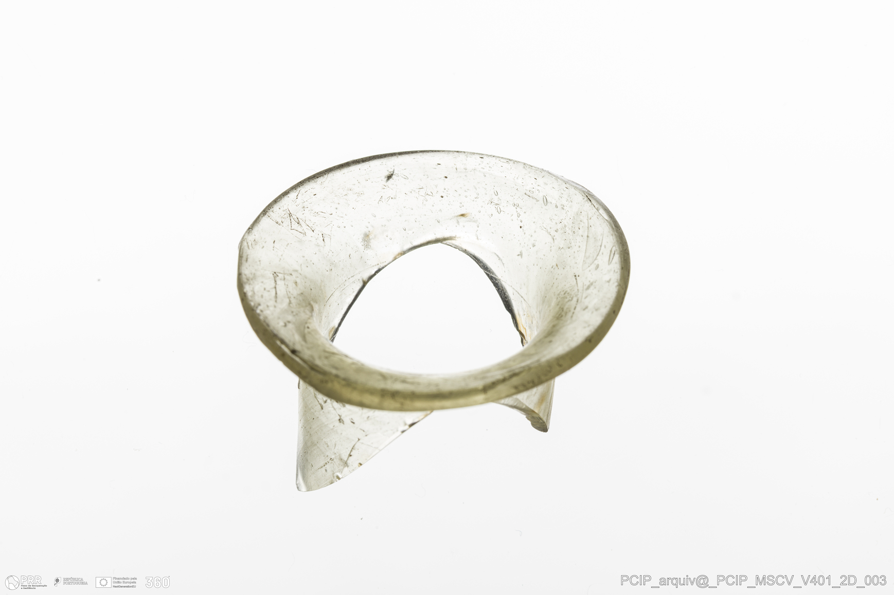 Matéria/Técnica: Vidro; Cronologia: Século XVII; Autoria: Desconhecida; Dimensões: Diâmetro bordo: 39mm.