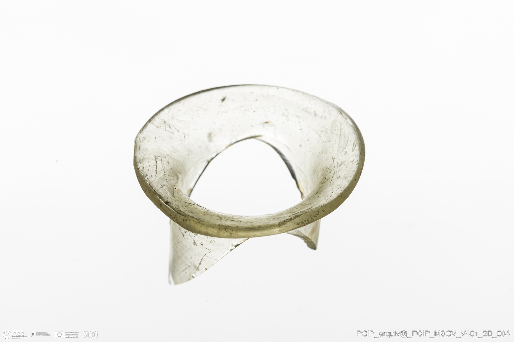 Matéria/Técnica: Vidro; Cronologia: Século XVII; Autoria: Desconhecida; Dimensões: Diâmetro bordo: 39mm.