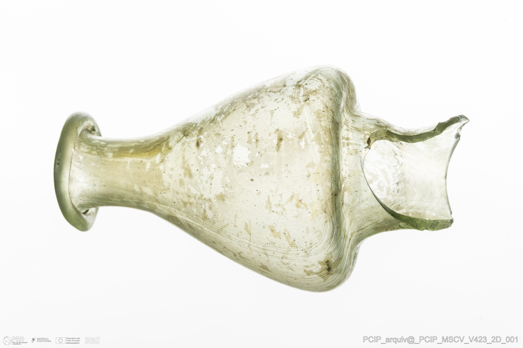 Matéria/Técnica: Vidro; Cronologia: Século XVII; Autoria: Desconhecida; Dimensões: Diâmetro bordo: 26mm.