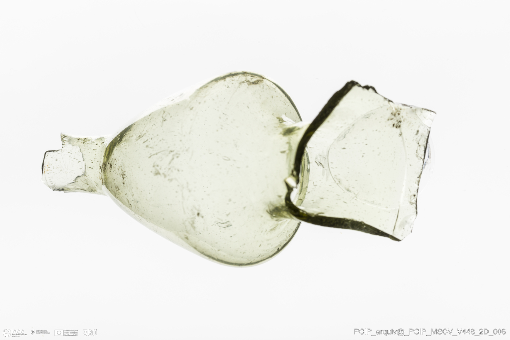 Matéria/Técnica: Vidro; Cronologia: Século XVII; Autoria: Desconhecida; Dimensões: Comprimento: 85mm; Largura: 37mm.