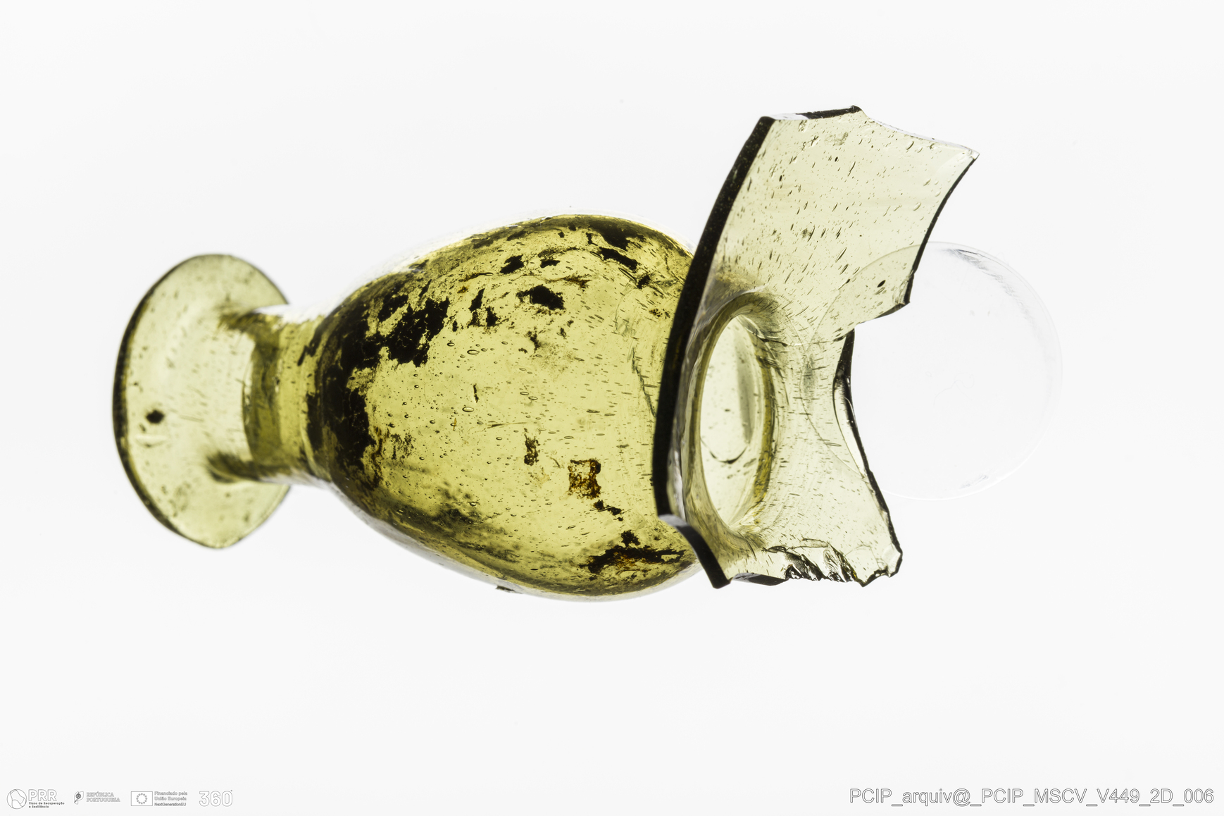 Matéria/Técnica: Vidro; Cronologia: Século XVII; Autoria: Desconhecida; Dimensões: Diâmetro Bordo: 24mm.