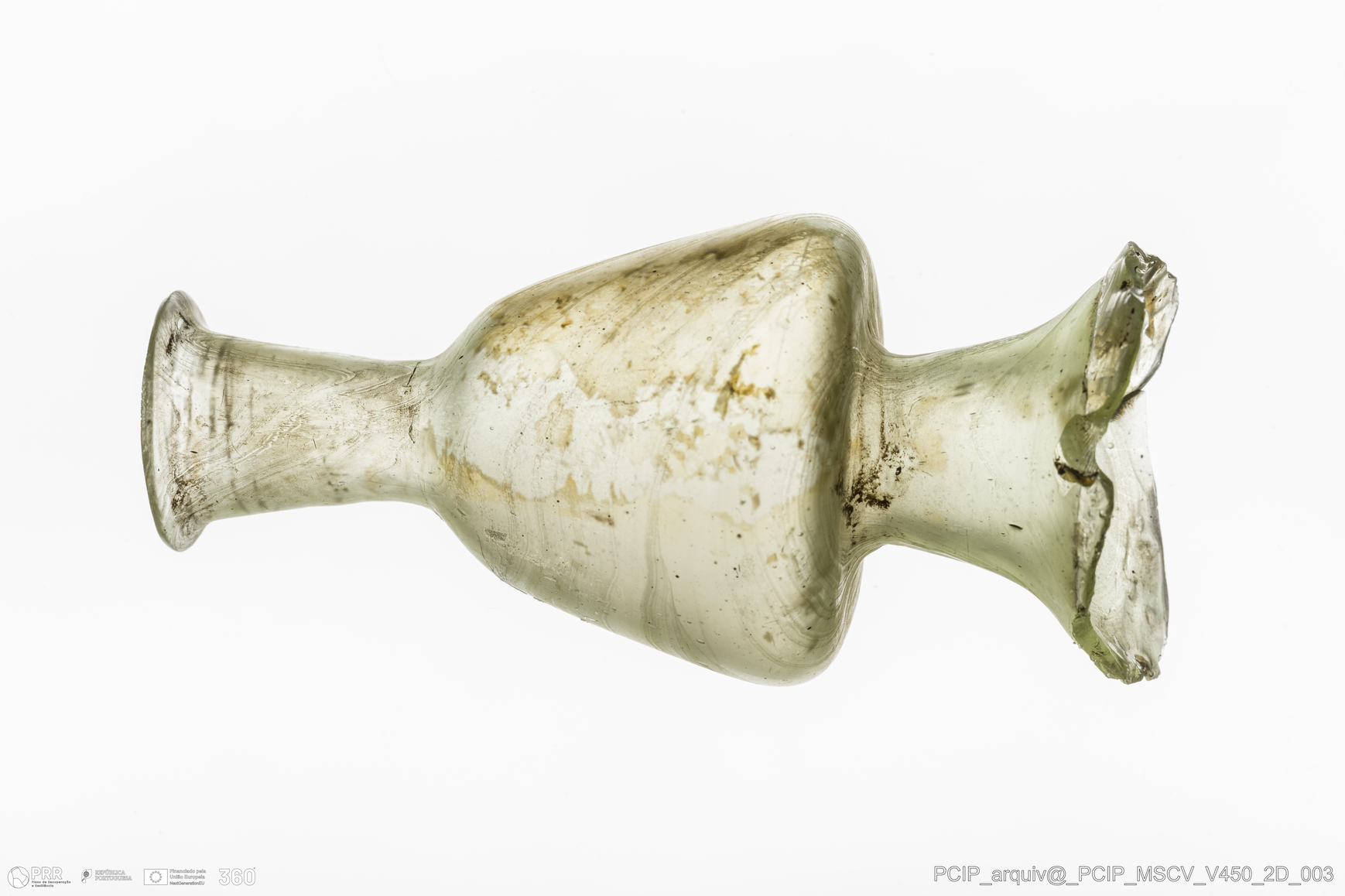 Matéria/Técnica: Vidro; Cronologia: Século XVII; Autoria: Desconhecida; Dimensões: Diâmetro Bordo: 21mm.