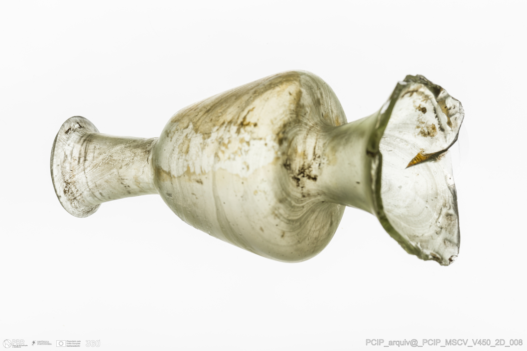 Matéria/Técnica: Vidro; Cronologia: Século XVII; Autoria: Desconhecida; Dimensões: Diâmetro Bordo: 21mm.
