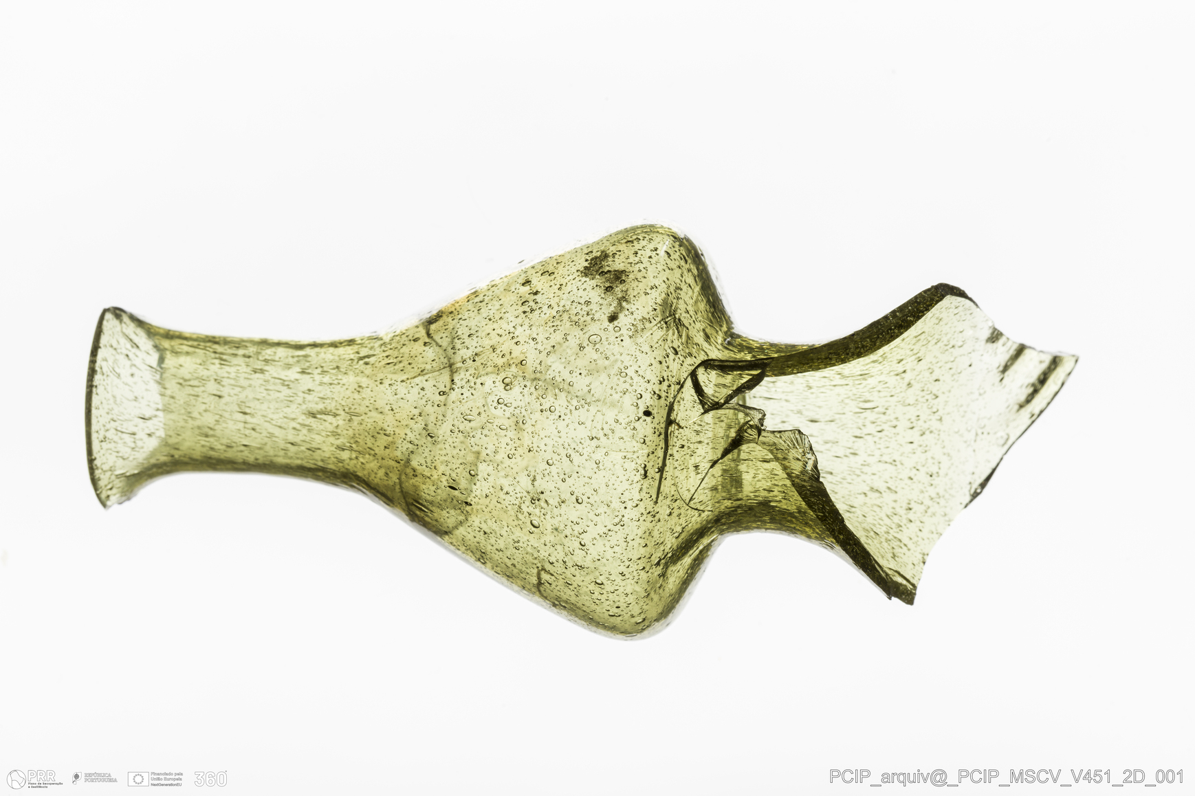 Matéria/Técnica: Vidro; Cronologia: Século XVII; Autoria: Desconhecida; Dimensões: Diâmetro Bordo: 21mm.