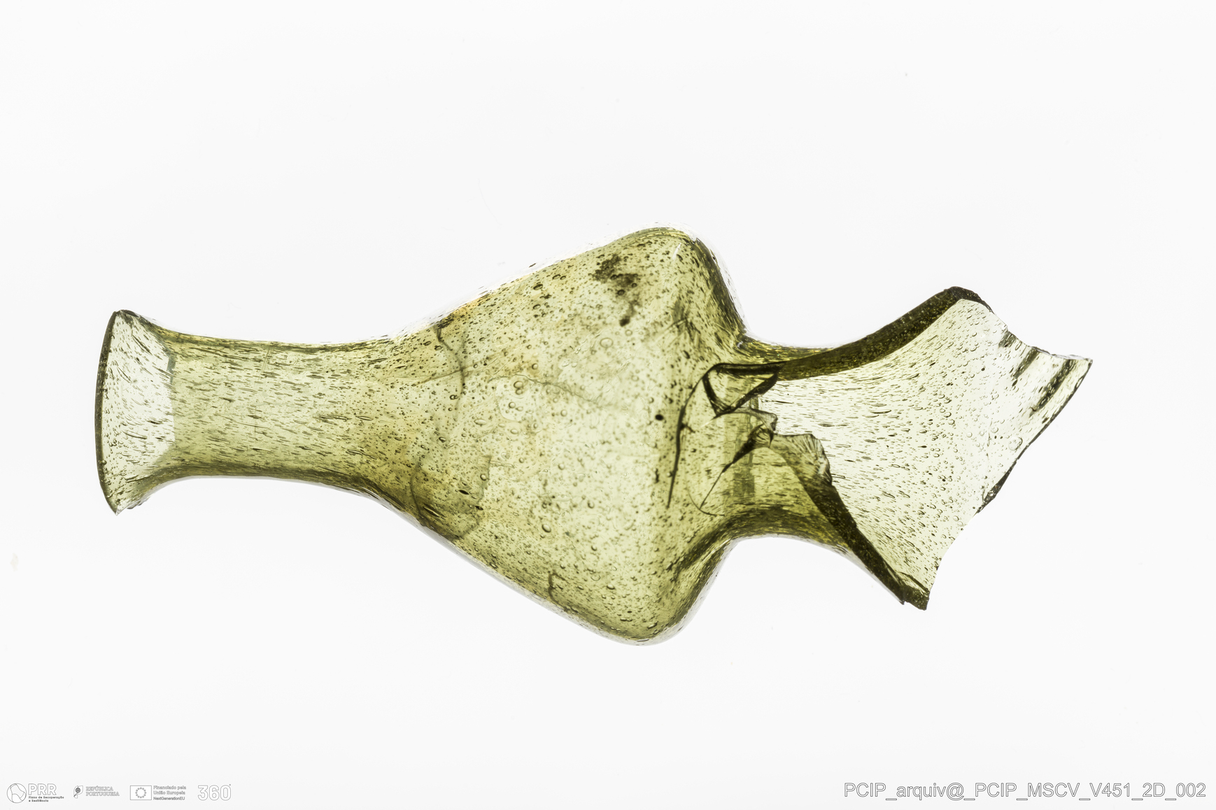 Matéria/Técnica: Vidro; Cronologia: Século XVII; Autoria: Desconhecida; Dimensões: Diâmetro Bordo: 21mm.