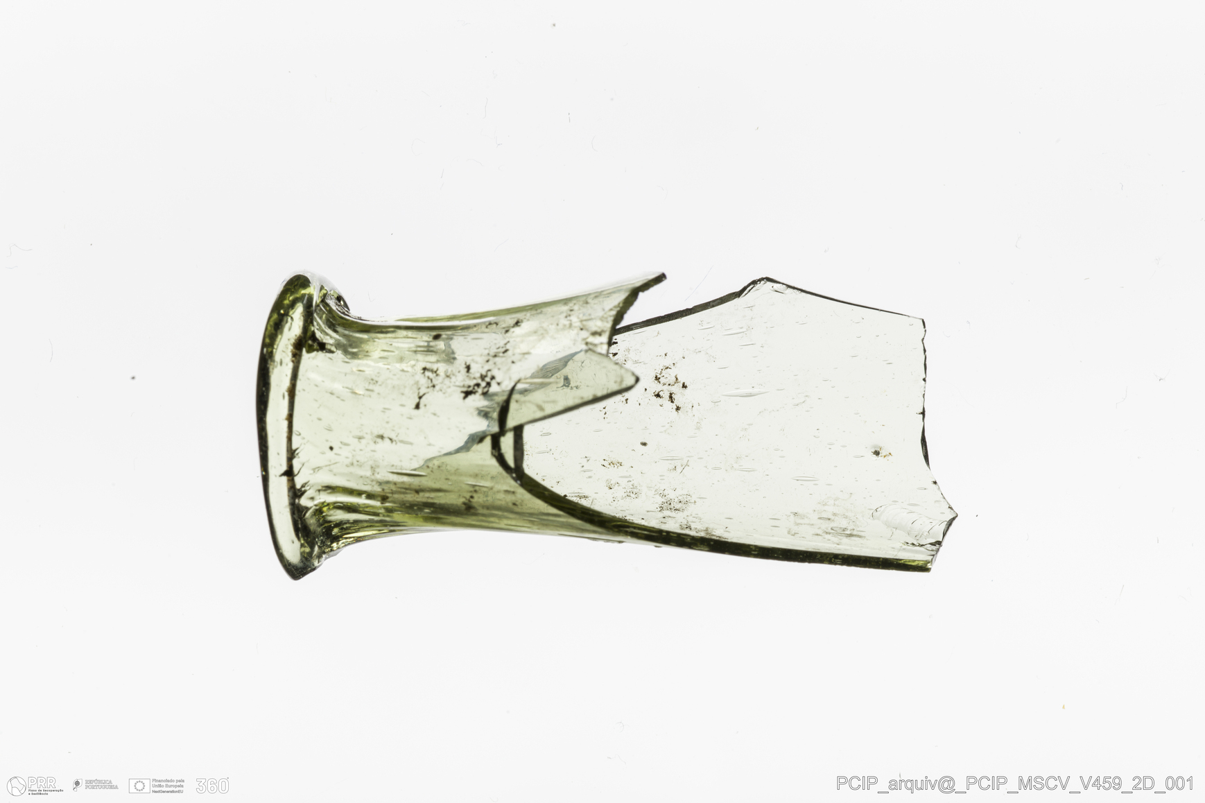 Matéria/Técnica: Vidro; Cronologia: Século XVII; Autoria: Desconhecida; Dimensões: Diâmetro Bordo: 20mm.
