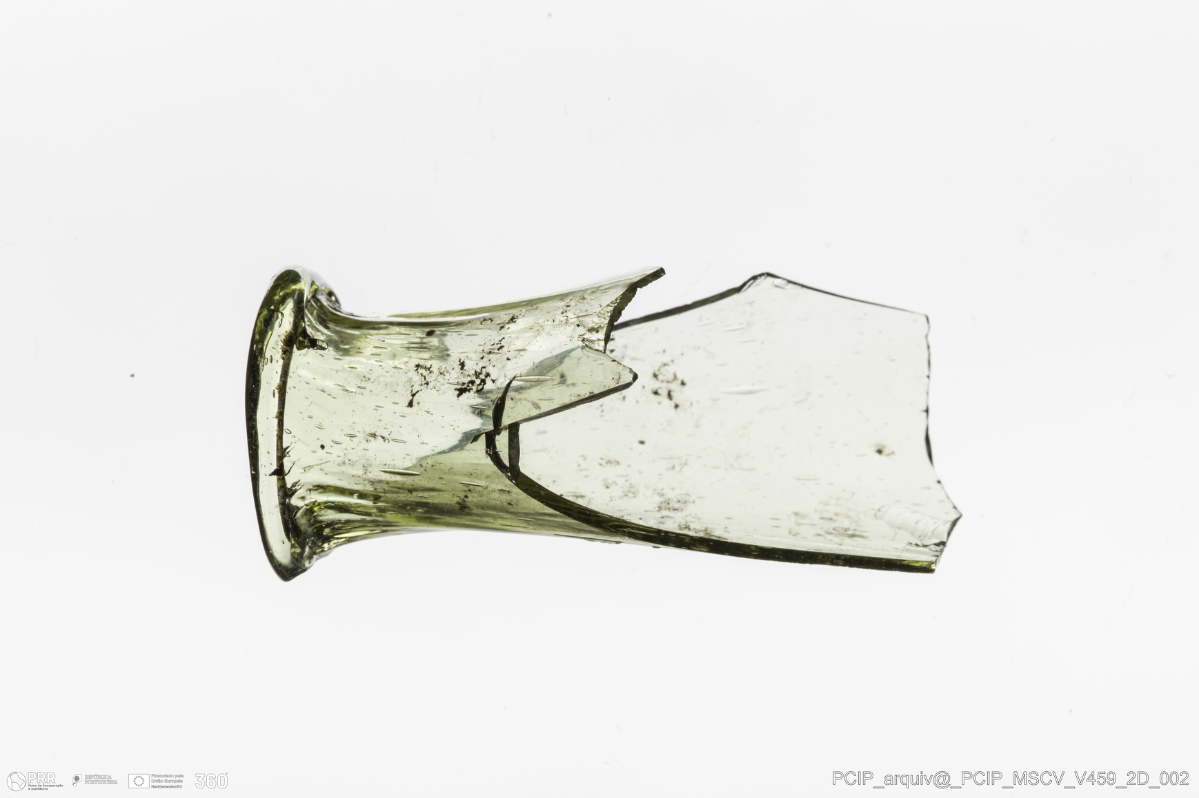 Matéria/Técnica: Vidro; Cronologia: Século XVII; Autoria: Desconhecida; Dimensões: Diâmetro Bordo: 20mm.
