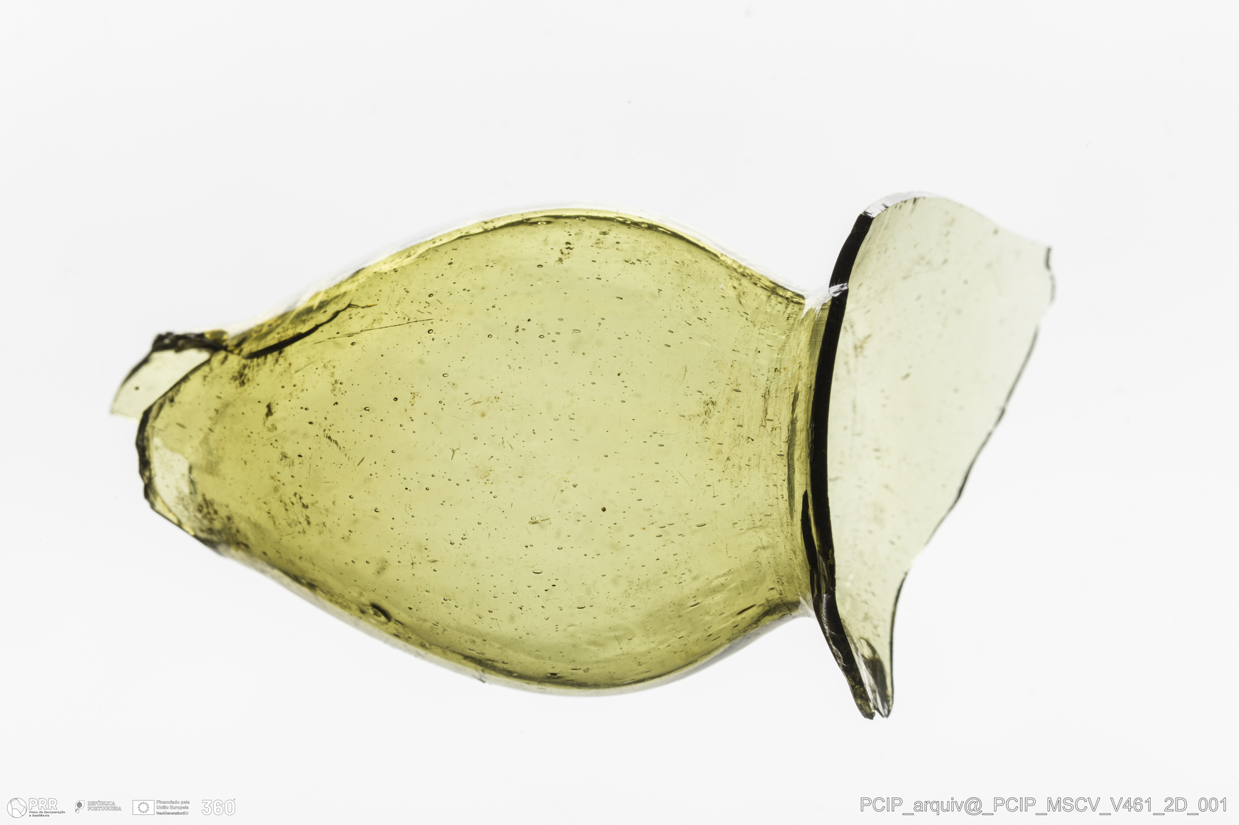 Matéria/Técnica: Vidro; Cronologia: Século XVII; Autoria: Desconhecida; Dimensões: Largura: 33mm; Altura: 65mm.