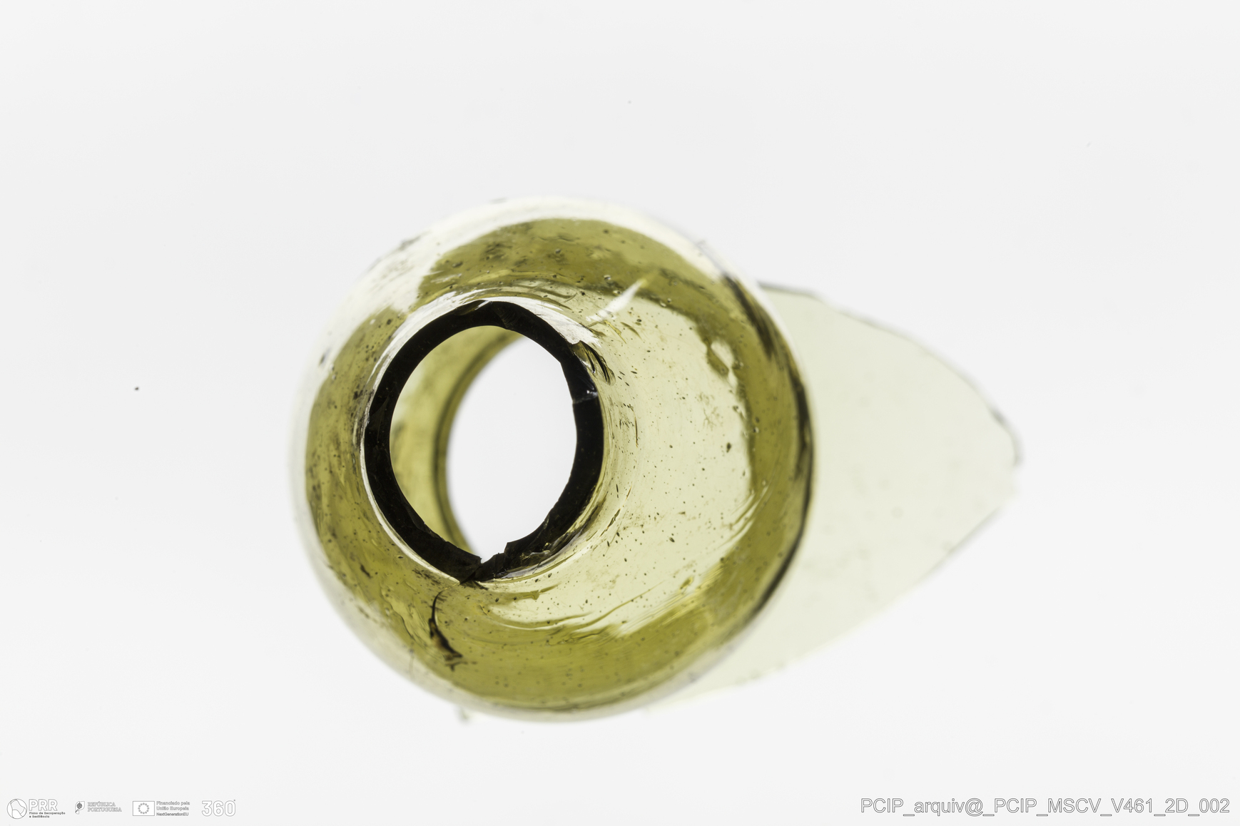 Matéria/Técnica: Vidro; Cronologia: Século XVII; Autoria: Desconhecida; Dimensões: Largura: 33mm; Altura: 65mm.