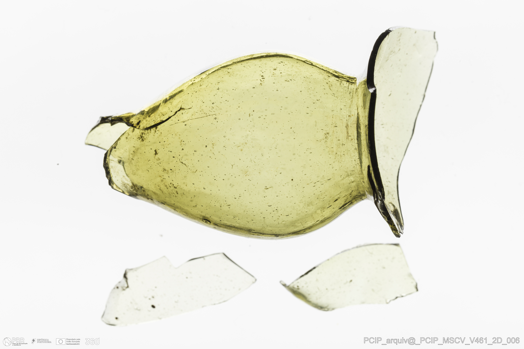 Matéria/Técnica: Vidro; Cronologia: Século XVII; Autoria: Desconhecida; Dimensões: Largura: 33mm; Altura: 65mm.