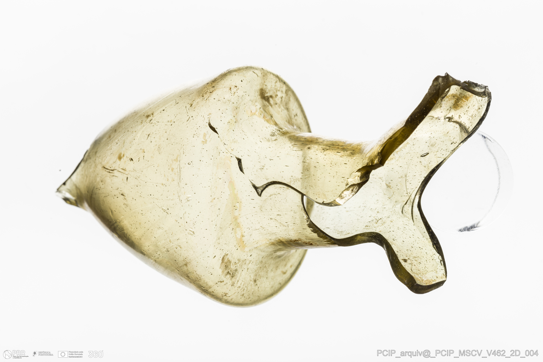 Matéria/Técnica: Vidro; Cronologia: Século XVII; Autoria: Desconhecida; Dimensões: Largura: 43mm; Altura: 90mm.