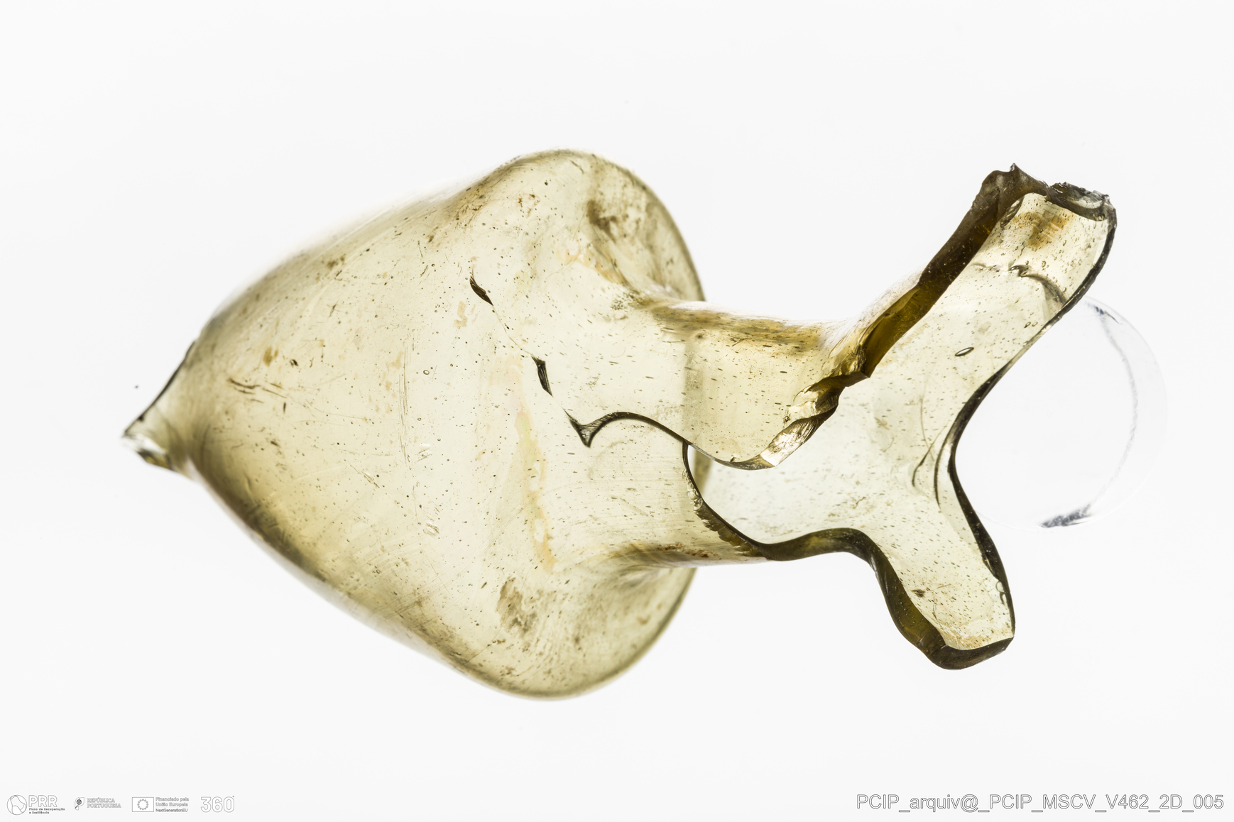 Matéria/Técnica: Vidro; Cronologia: Século XVII; Autoria: Desconhecida; Dimensões: Largura: 43mm; Altura: 90mm.