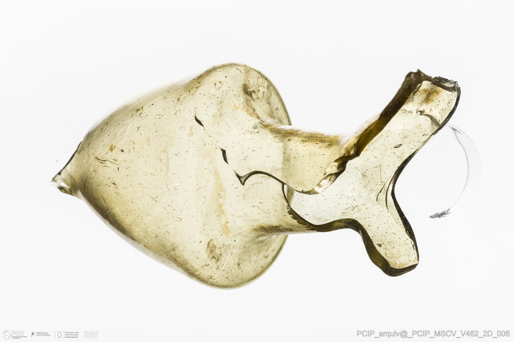 Matéria/Técnica: Vidro; Cronologia: Século XVII; Autoria: Desconhecida; Dimensões: Largura: 43mm; Altura: 90mm.