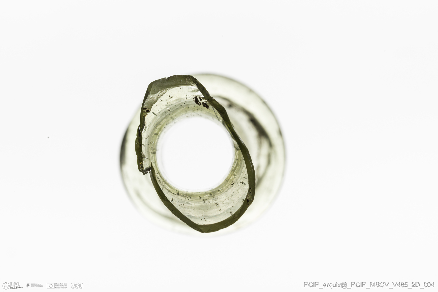 Matéria/Técnica: Vidro; Cronologia: Século XVII; Autoria: Desconhecida; Dimensões: Diâmetro Bordo: 26mm.