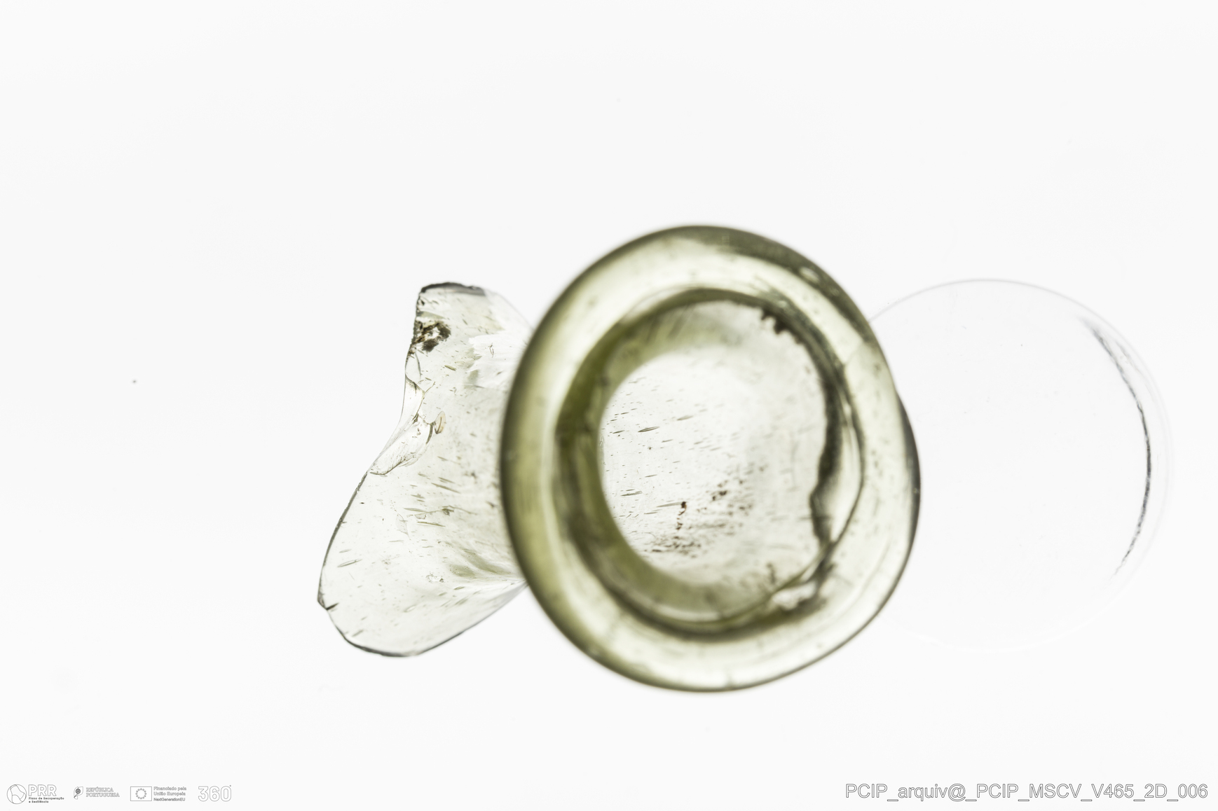 Matéria/Técnica: Vidro; Cronologia: Século XVII; Autoria: Desconhecida; Dimensões: Diâmetro Bordo: 26mm.
