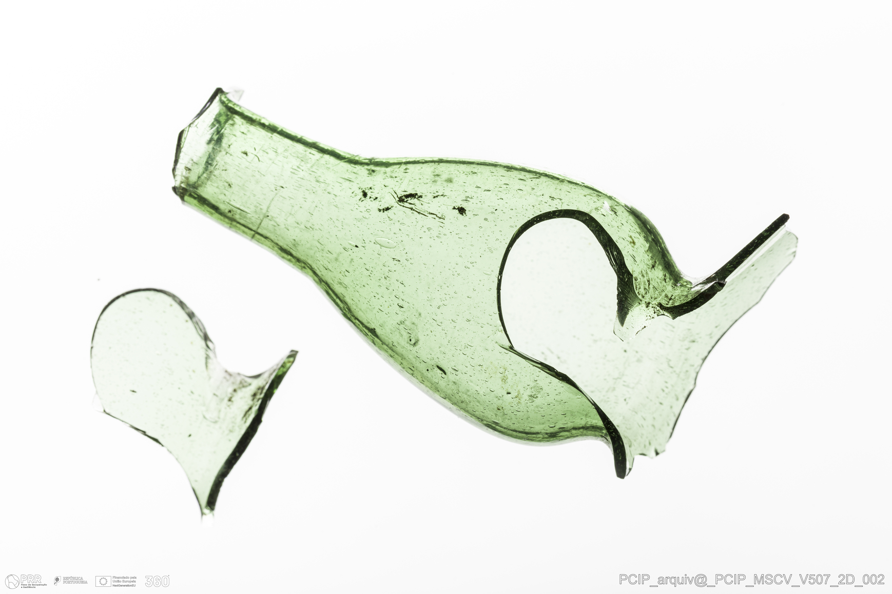 Matéria/Técnica: Vidro; Cronologia: Século XVII; Autoria: Desconhecida; Dimensões: Largura: 34mm; Altura: 74mm.