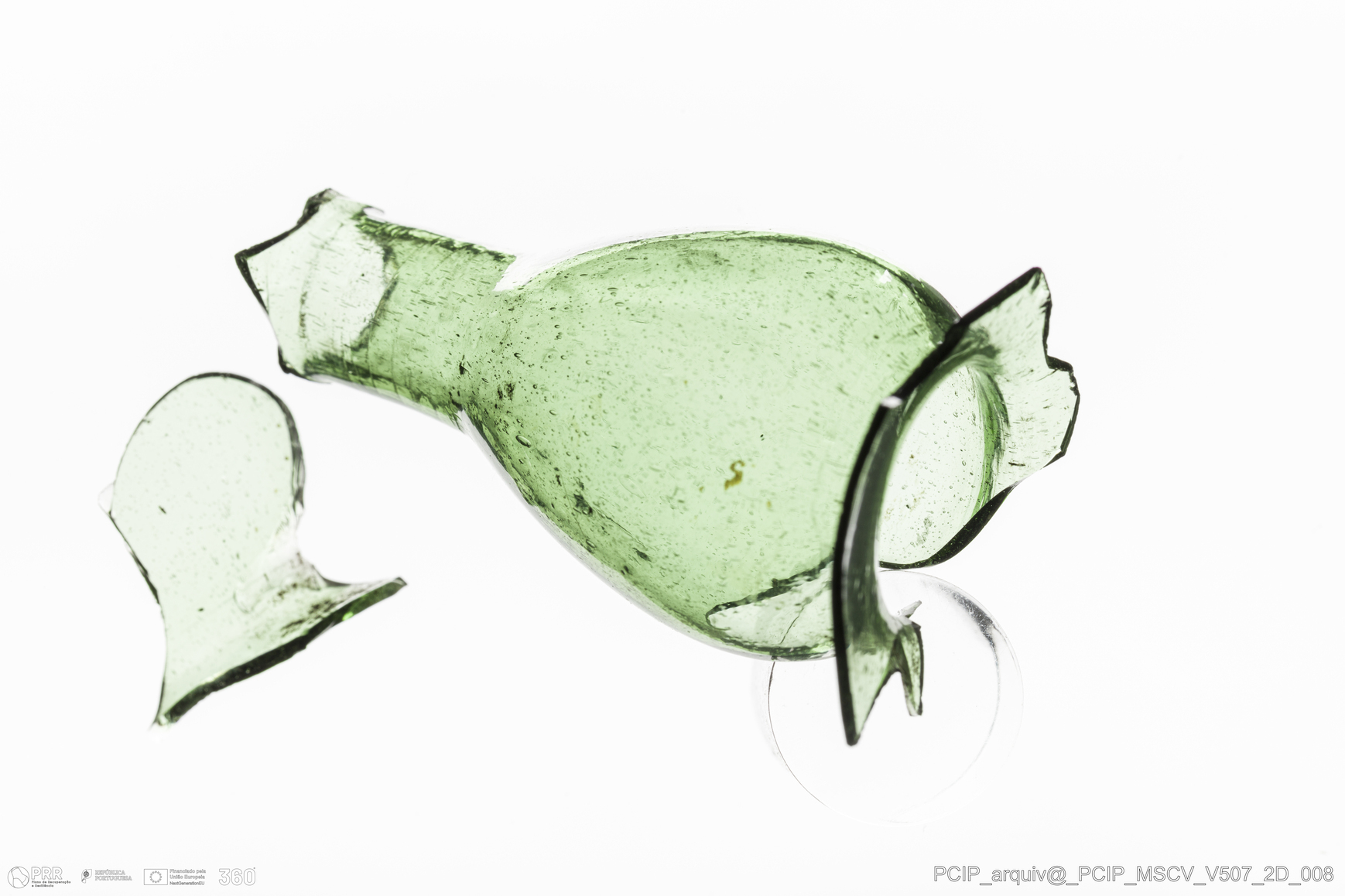 Matéria/Técnica: Vidro; Cronologia: Século XVII; Autoria: Desconhecida; Dimensões: Largura: 34mm; Altura: 74mm.
