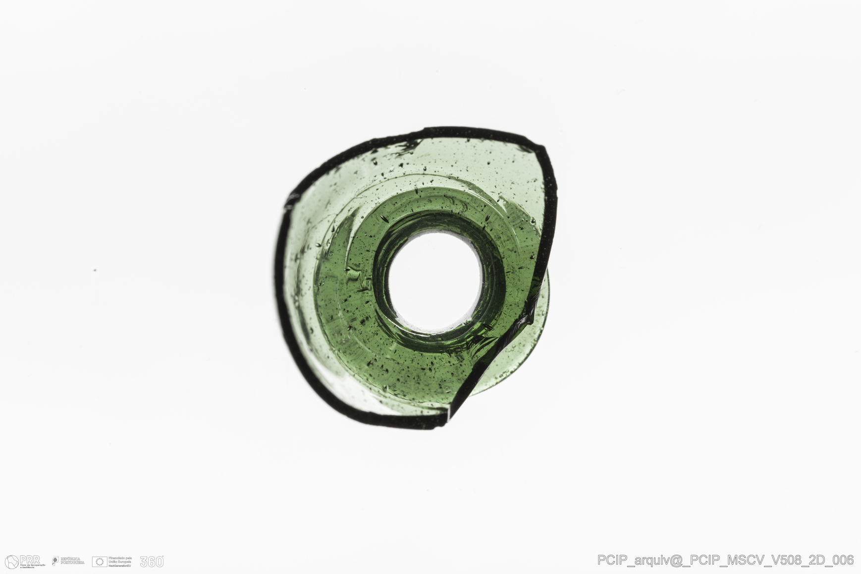 Matéria/Técnica: Vidro; Cronologia: Século XVII; Autoria: Desconhecida; Dimensões: Diâmetro Bordo: 65mm.
