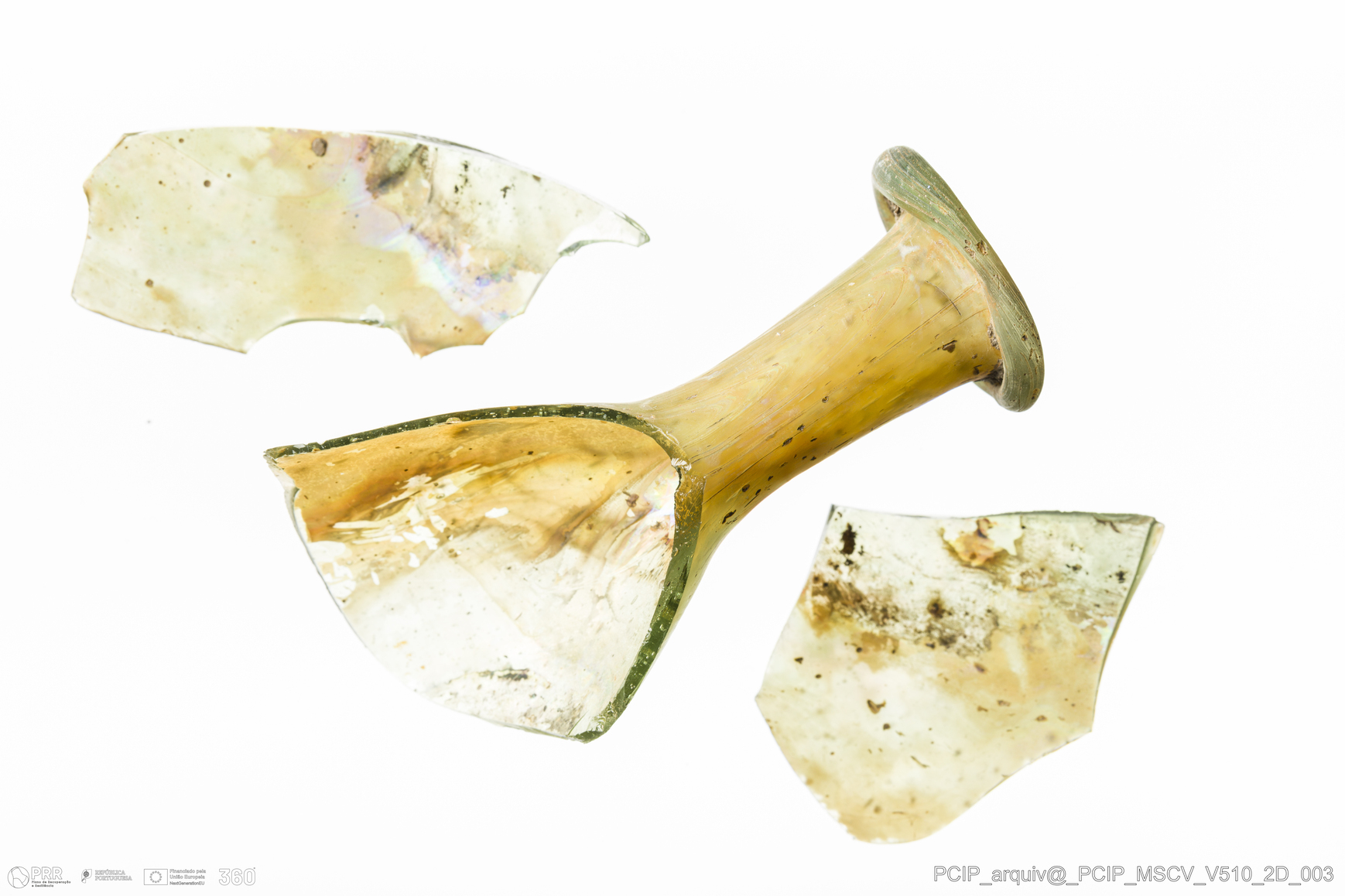 Matéria/Técnica: Vidro; Cronologia: Século XVII; Autoria: Desconhecida; Dimensões: Diâmetro Bordo: 27mm.