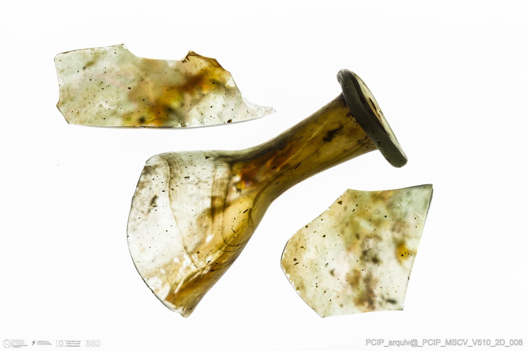 Matéria/Técnica: Vidro; Cronologia: Século XVII; Autoria: Desconhecida; Dimensões: Diâmetro Bordo: 27mm.