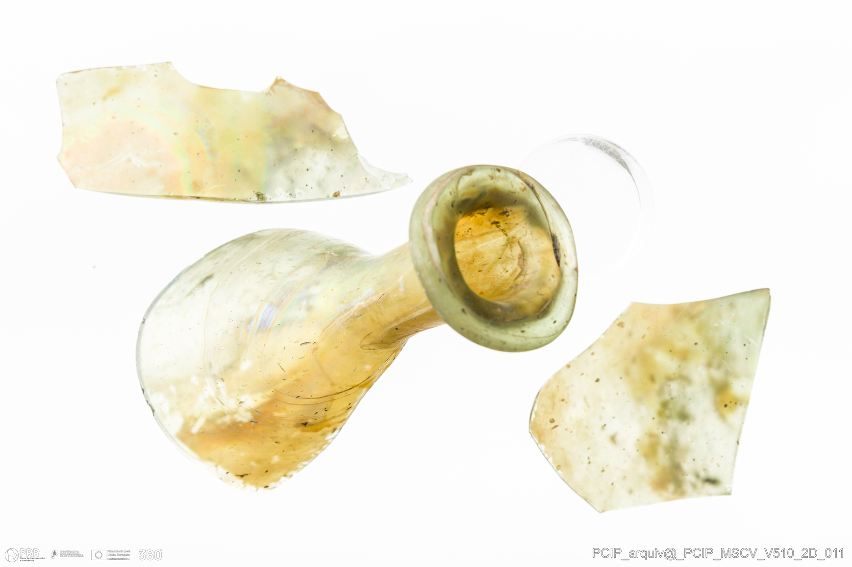Matéria/Técnica: Vidro; Cronologia: Século XVII; Autoria: Desconhecida; Dimensões: Diâmetro Bordo: 27mm.