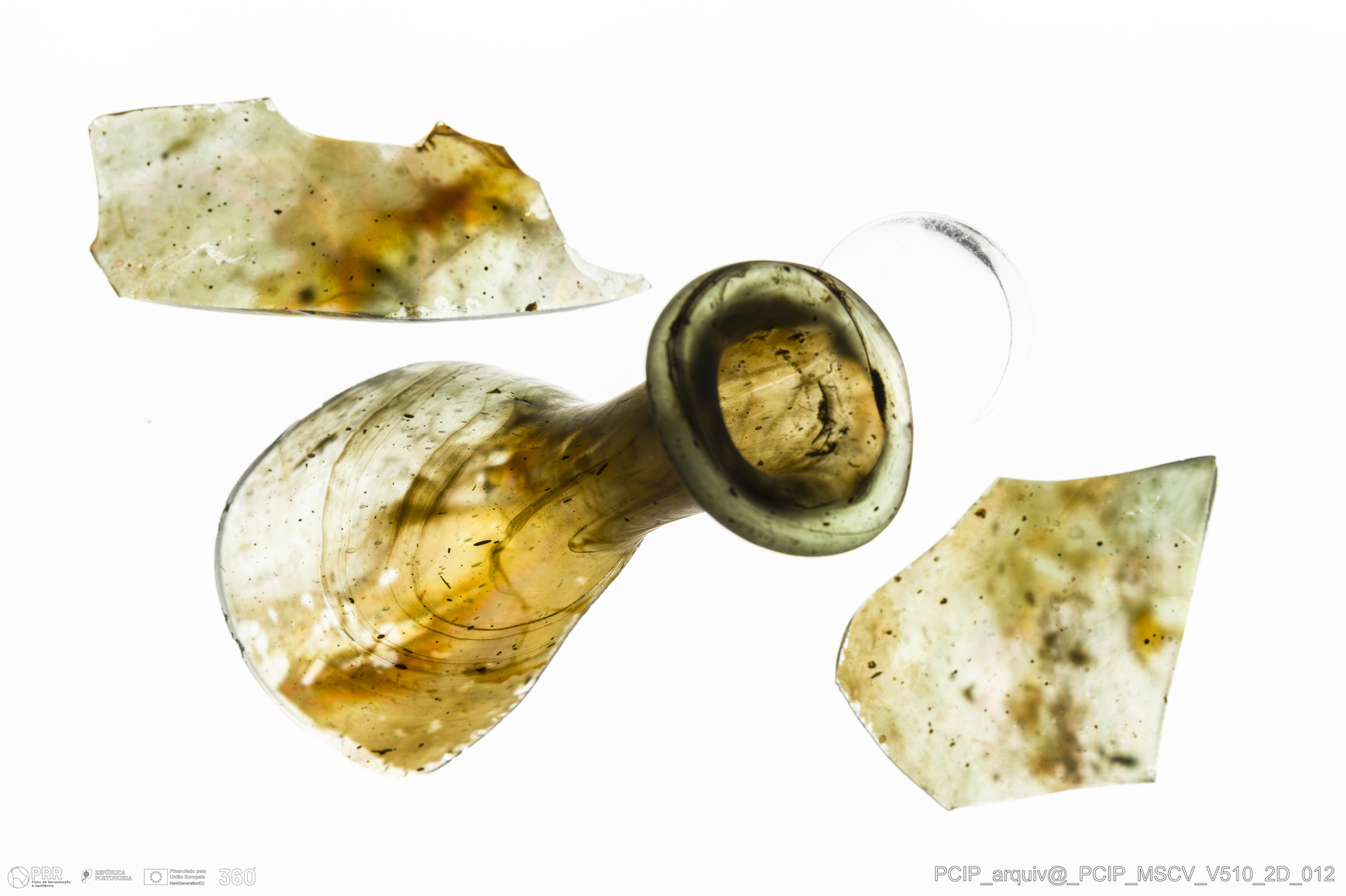 Matéria/Técnica: Vidro; Cronologia: Século XVII; Autoria: Desconhecida; Dimensões: Diâmetro Bordo: 27mm.
