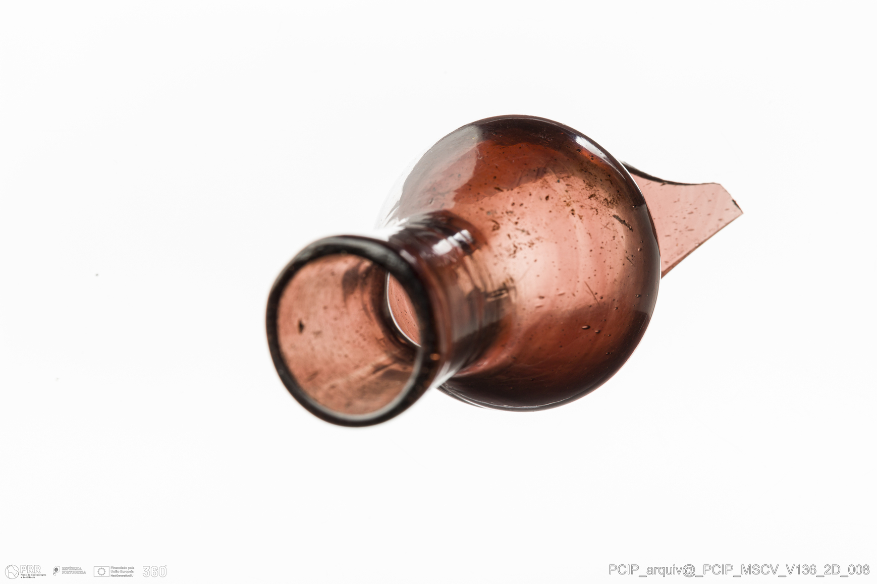 Matéria/Técnica: Vidro; Cronologia: Século XVII; Autoria: Desconhecida; Dimensões: Diâmetro Bordo: 17mm.