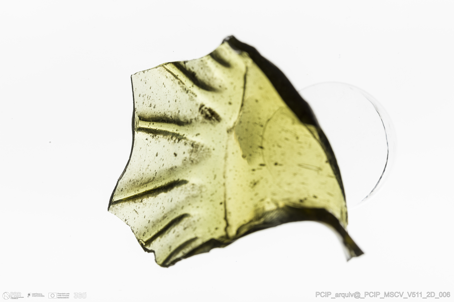Matéria/Técnica: Vidro; Cronologia: Século XVII; Autoria: Desconhecida; Dimensões: Diâmetro Bordo: 27mm.