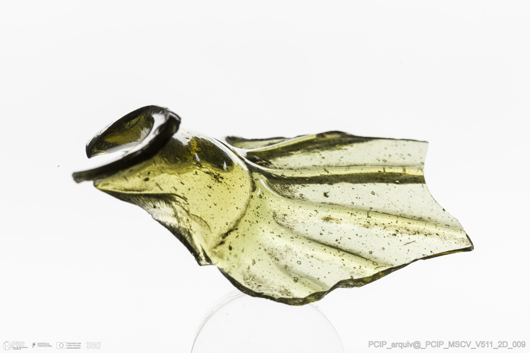 Matéria/Técnica: Vidro; Cronologia: Século XVII; Autoria: Desconhecida; Dimensões: Diâmetro Bordo: 27mm.