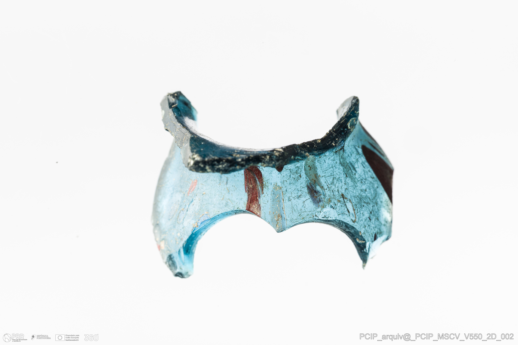 Matéria/Técnica: Vidro; Cronologia: Século XVII; Autoria: Desconhecida; Dimensões: comprimento: 22mm; Largura: 16mm.