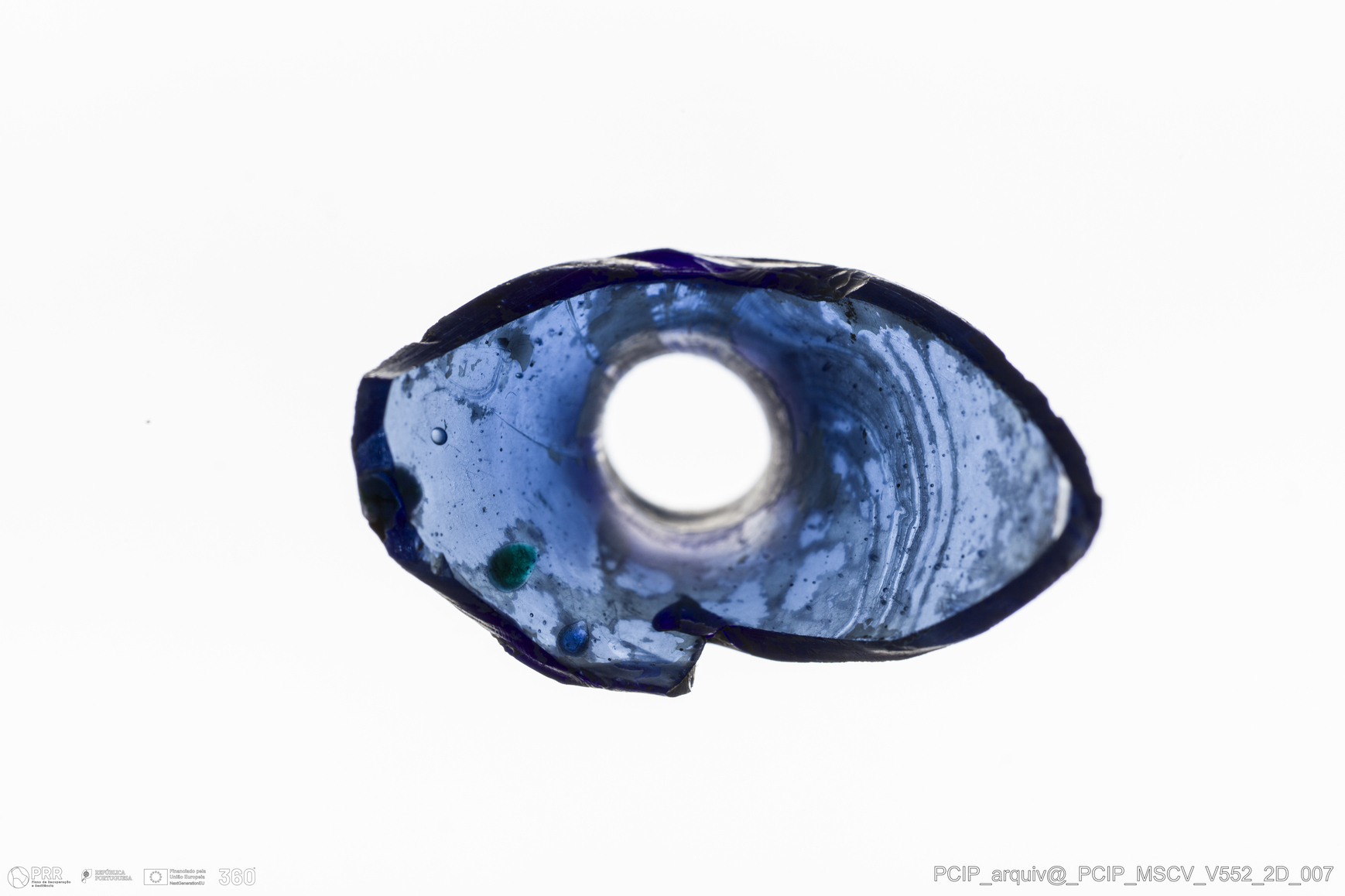 Matéria/Técnica: Vidro; Cronologia: Século XVII; Autoria: Desconhecida; Dimensões: Altura: 44mm; Largura: 30mm.
