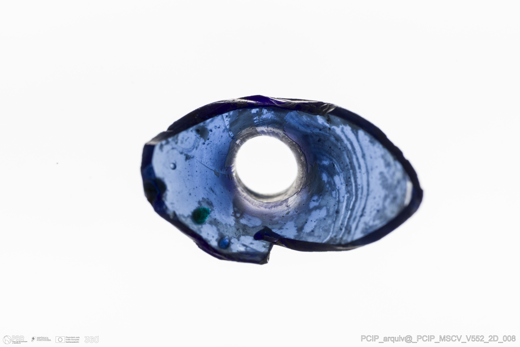 Matéria/Técnica: Vidro; Cronologia: Século XVII; Autoria: Desconhecida; Dimensões: Altura: 44mm; Largura: 30mm.