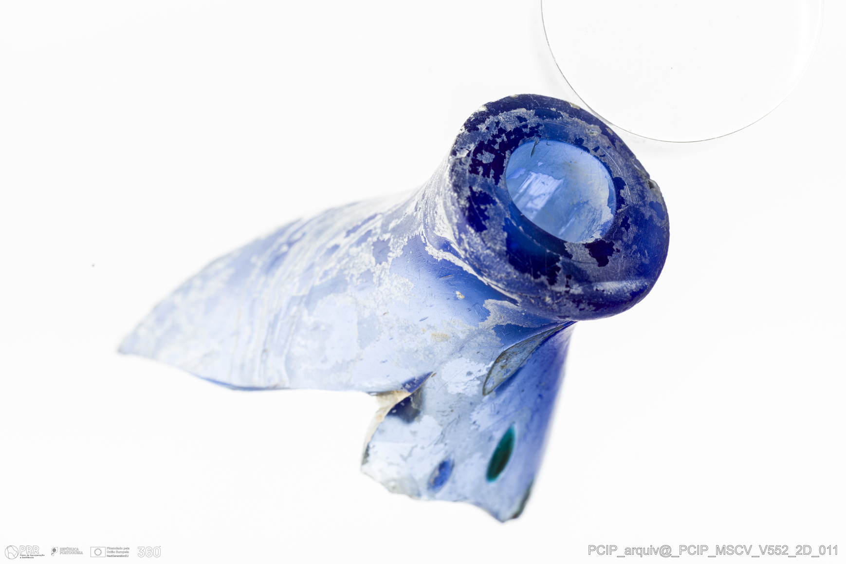 Matéria/Técnica: Vidro; Cronologia: Século XVII; Autoria: Desconhecida; Dimensões: Altura: 44mm; Largura: 30mm.