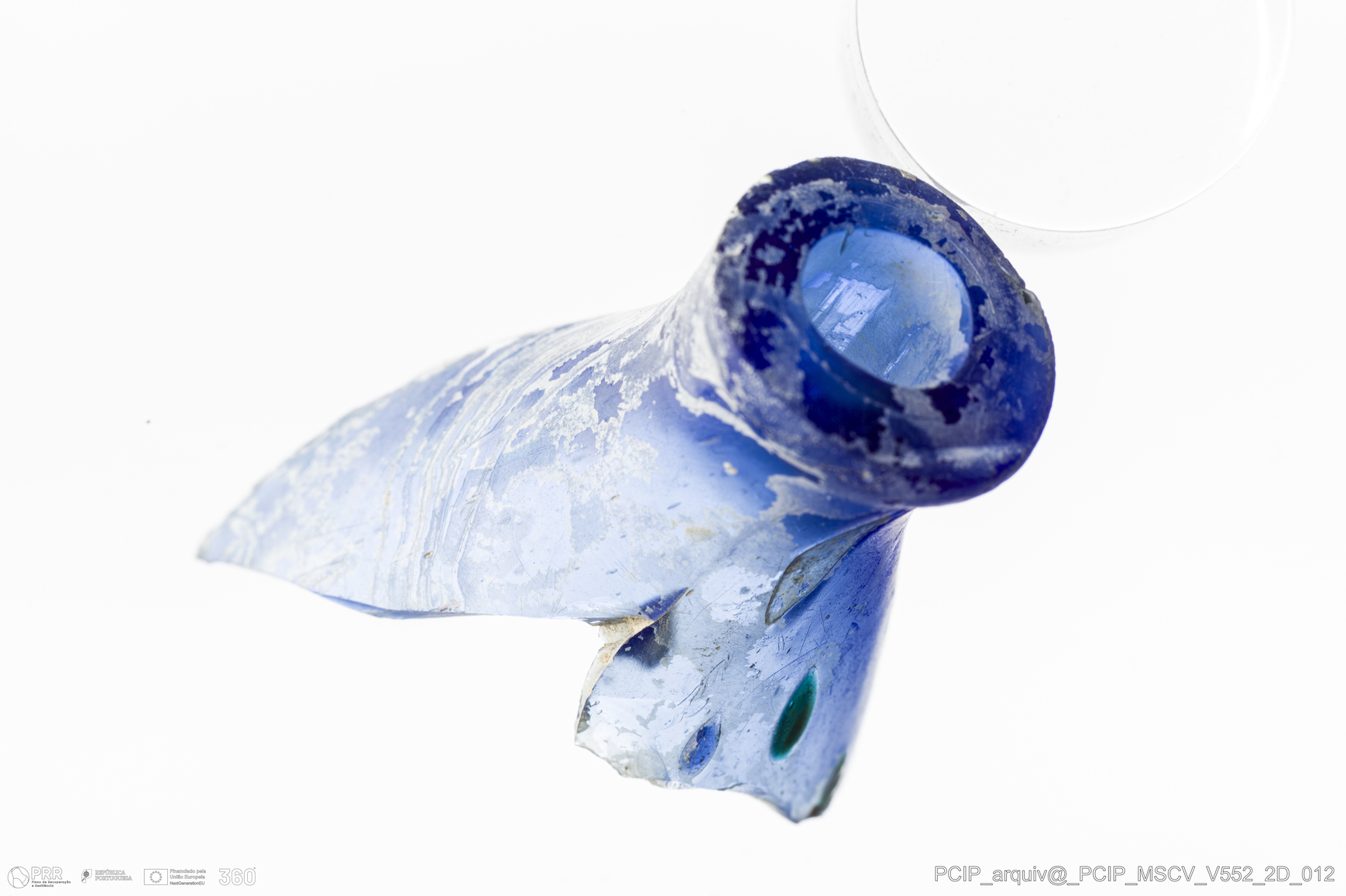 Matéria/Técnica: Vidro; Cronologia: Século XVII; Autoria: Desconhecida; Dimensões: Altura: 44mm; Largura: 30mm.