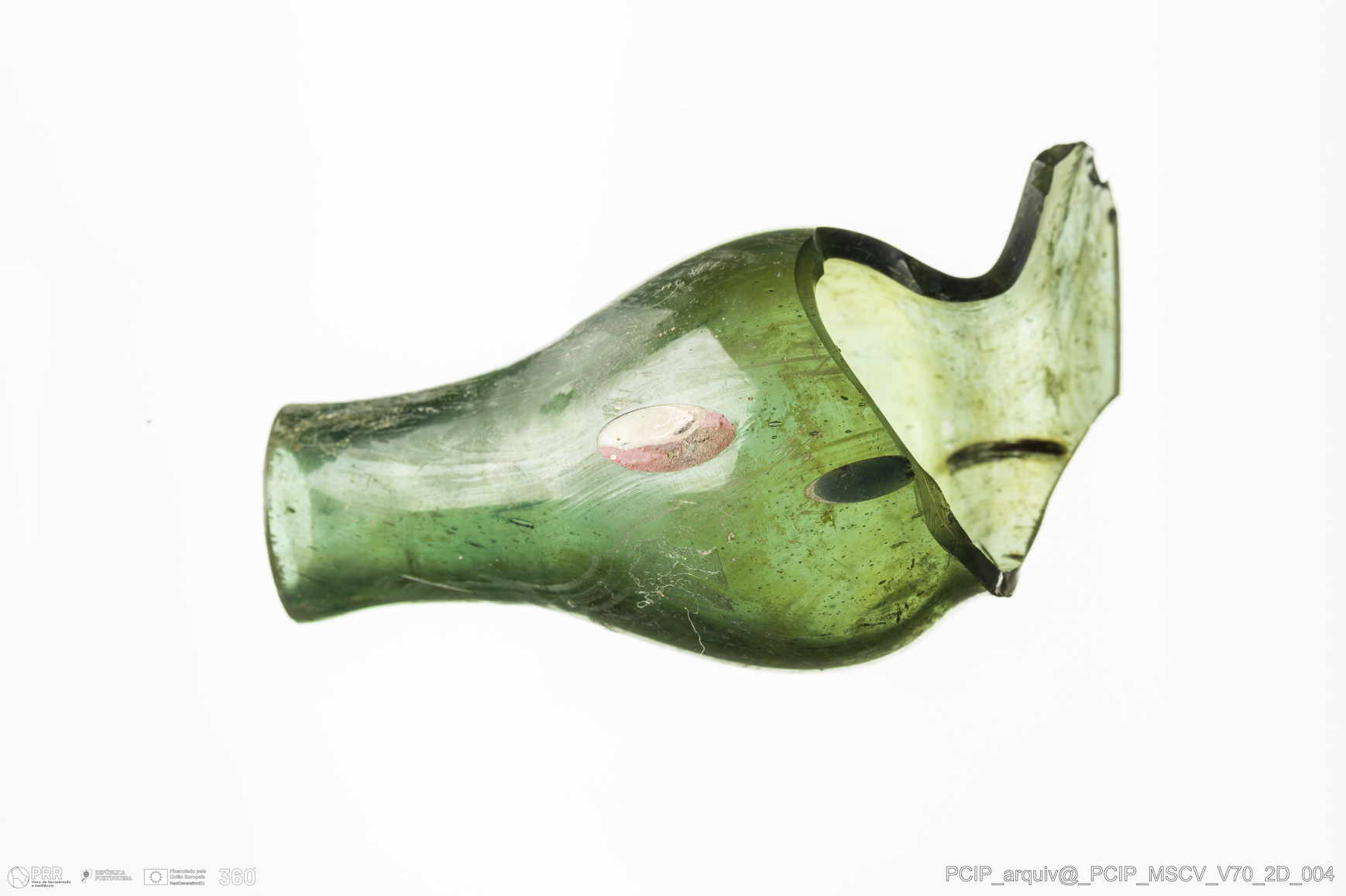 Matéria/Técnica: Vidro; Cronologia: Século XVII; Autoria: Desconhecida; Dimensões: Diâmetro bordo: 16mm.