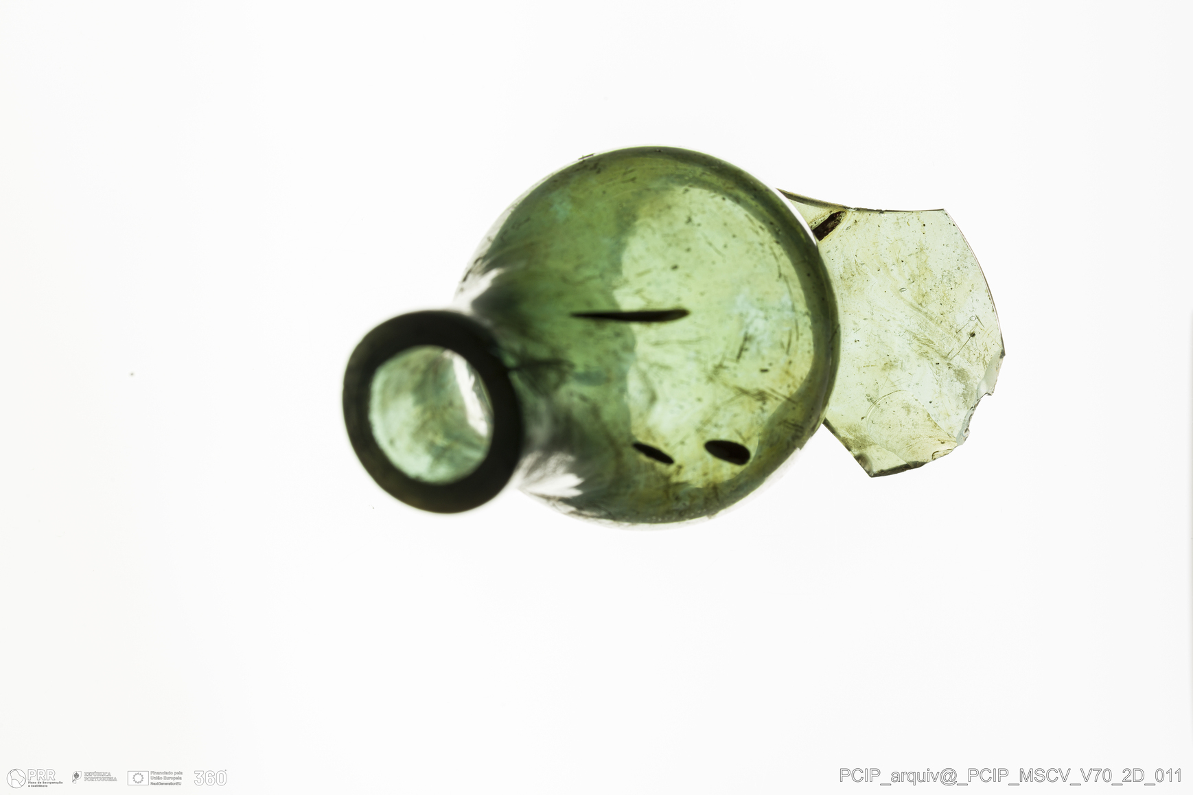 Matéria/Técnica: Vidro; Cronologia: Século XVII; Autoria: Desconhecida; Dimensões: Diâmetro bordo: 16mm.