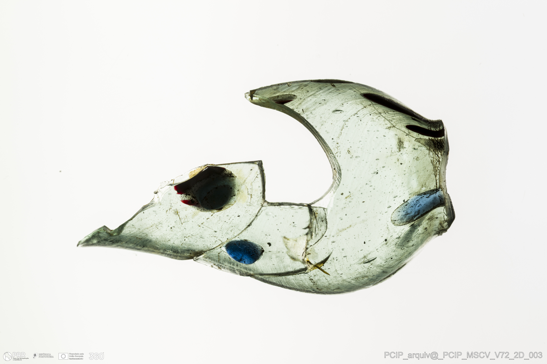 Matéria/Técnica: Vidro; Cronologia: Século XVII; Autoria: Desconhecida; Dimensões: Altura: 48mm; Largura: 27mm.