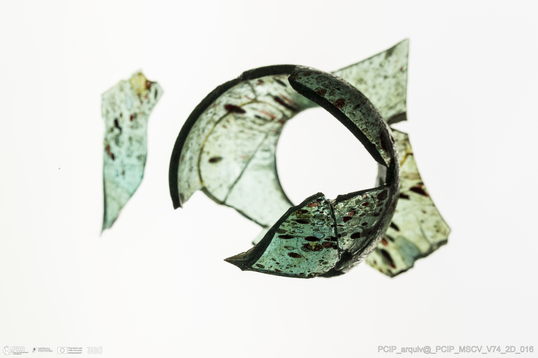 Matéria/Técnica: Vidro; Cronologia: Século XVII; Autoria: Desconhecida; Dimensões: Altura: 52mm; Largura: 33mm.