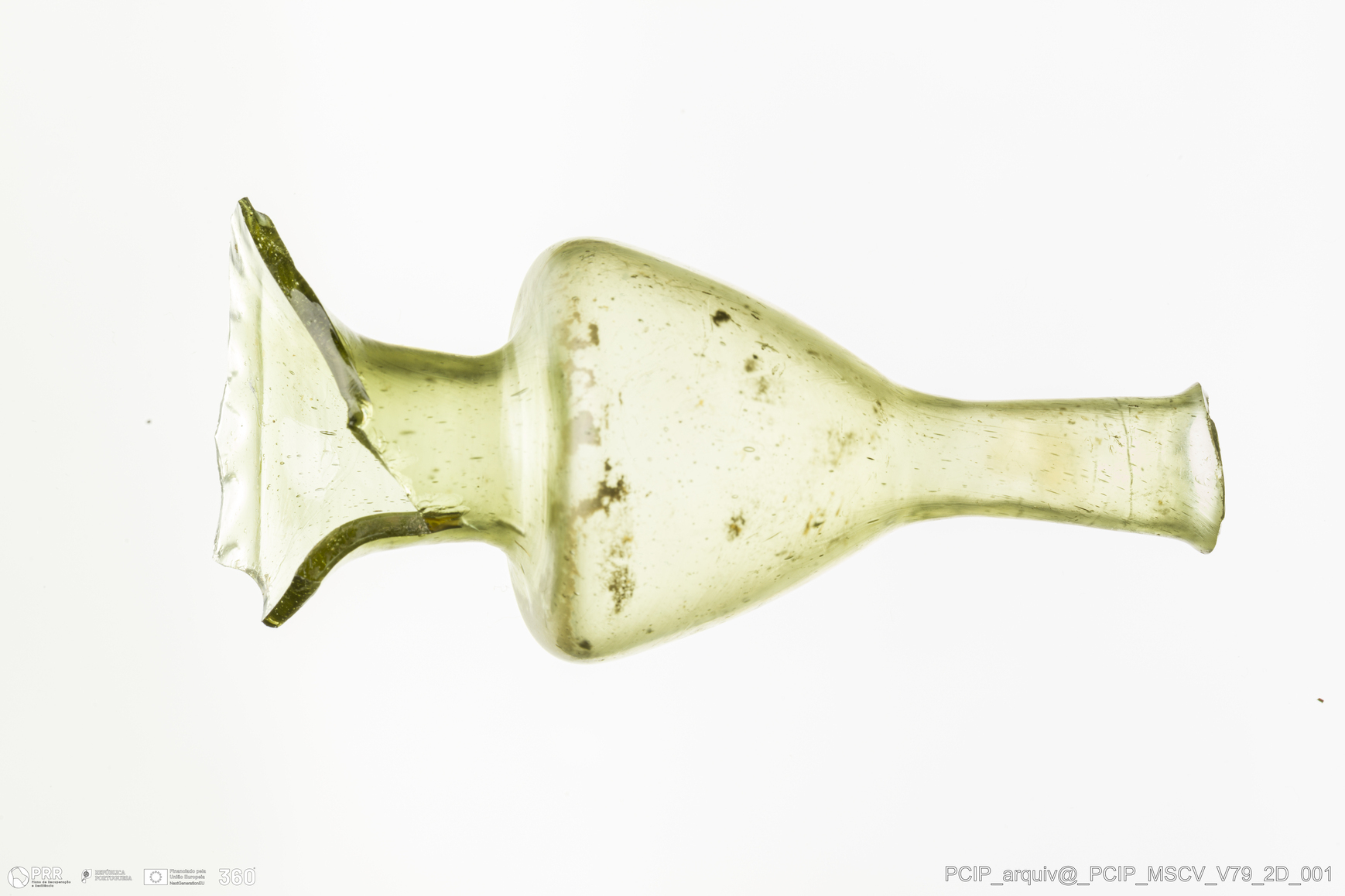 Matéria/Técnica: Vidro; Cronologia: Século XVII; Autoria: Desconhecida; Dimensões: Altura: 92mm; Largura: 39mm.