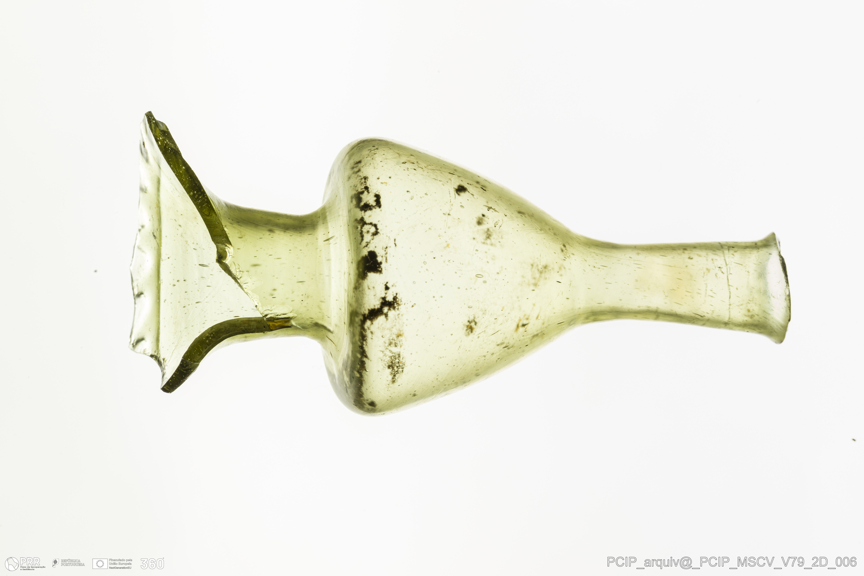 Matéria/Técnica: Vidro; Cronologia: Século XVII; Autoria: Desconhecida; Dimensões: Altura: 92mm; Largura: 39mm.