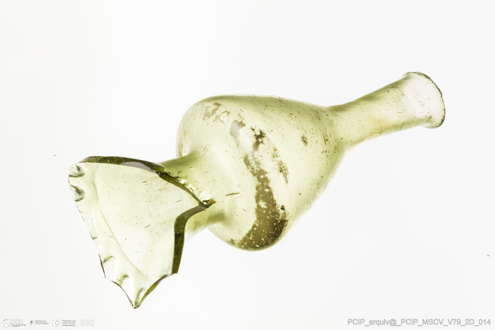 Matéria/Técnica: Vidro; Cronologia: Século XVII; Autoria: Desconhecida; Dimensões: Altura: 92mm; Largura: 39mm.