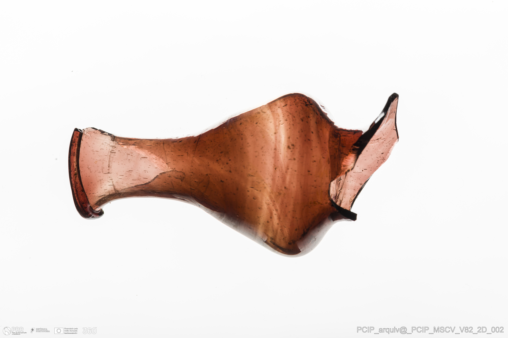 Matéria/Técnica: Vidro; Cronologia: Século XVII; Autoria: Desconhecida; Dimensões: Diâmetro bordo: 25mm.