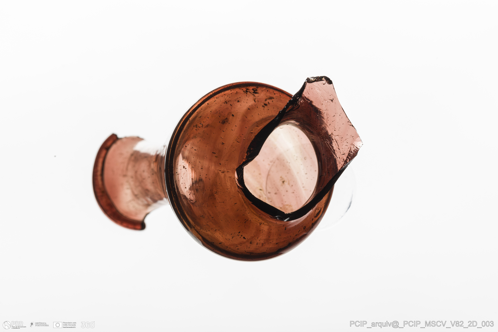 Matéria/Técnica: Vidro; Cronologia: Século XVII; Autoria: Desconhecida; Dimensões: Diâmetro bordo: 25mm.