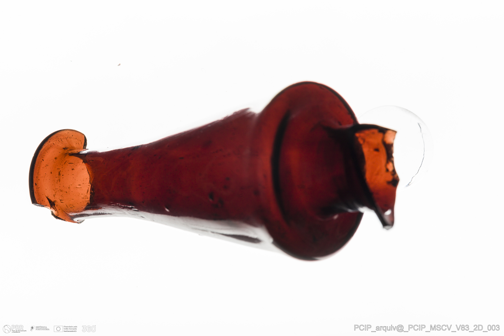 Matéria/Técnica: Vidro; Cronologia: Século XVII; Autoria: Desconhecida; Dimensões: Diâmetro bordo: 28mm.