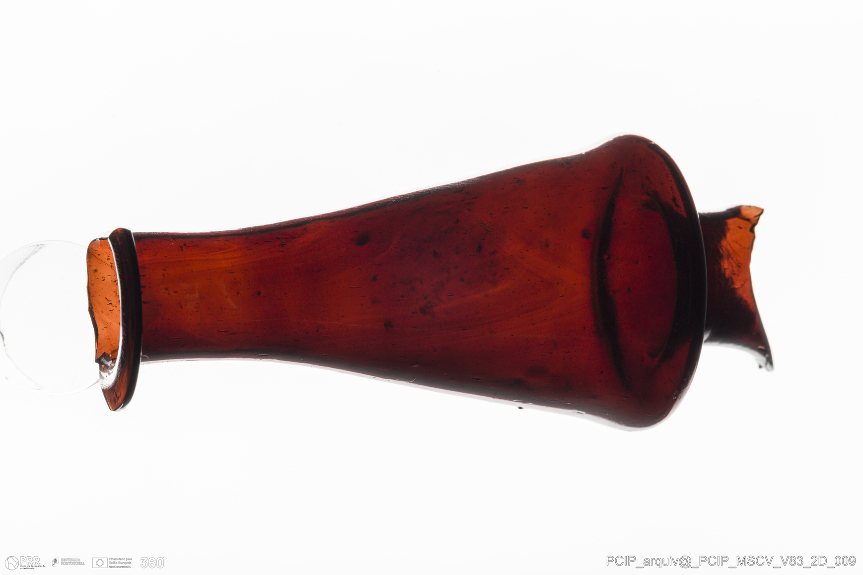 Matéria/Técnica: Vidro; Cronologia: Século XVII; Autoria: Desconhecida; Dimensões: Diâmetro bordo: 28mm.