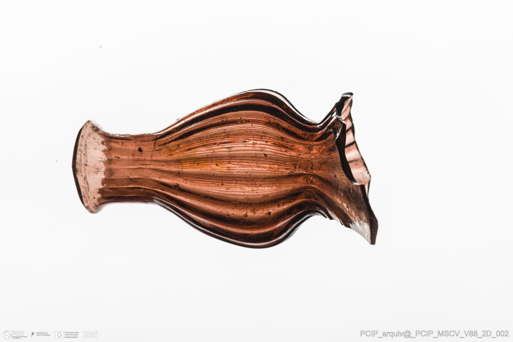 Matéria/Técnica: Vidro; Cronologia: Século XVII; Autoria: Desconhecida; Dimensões: Diâmetro bordo: 20mm.