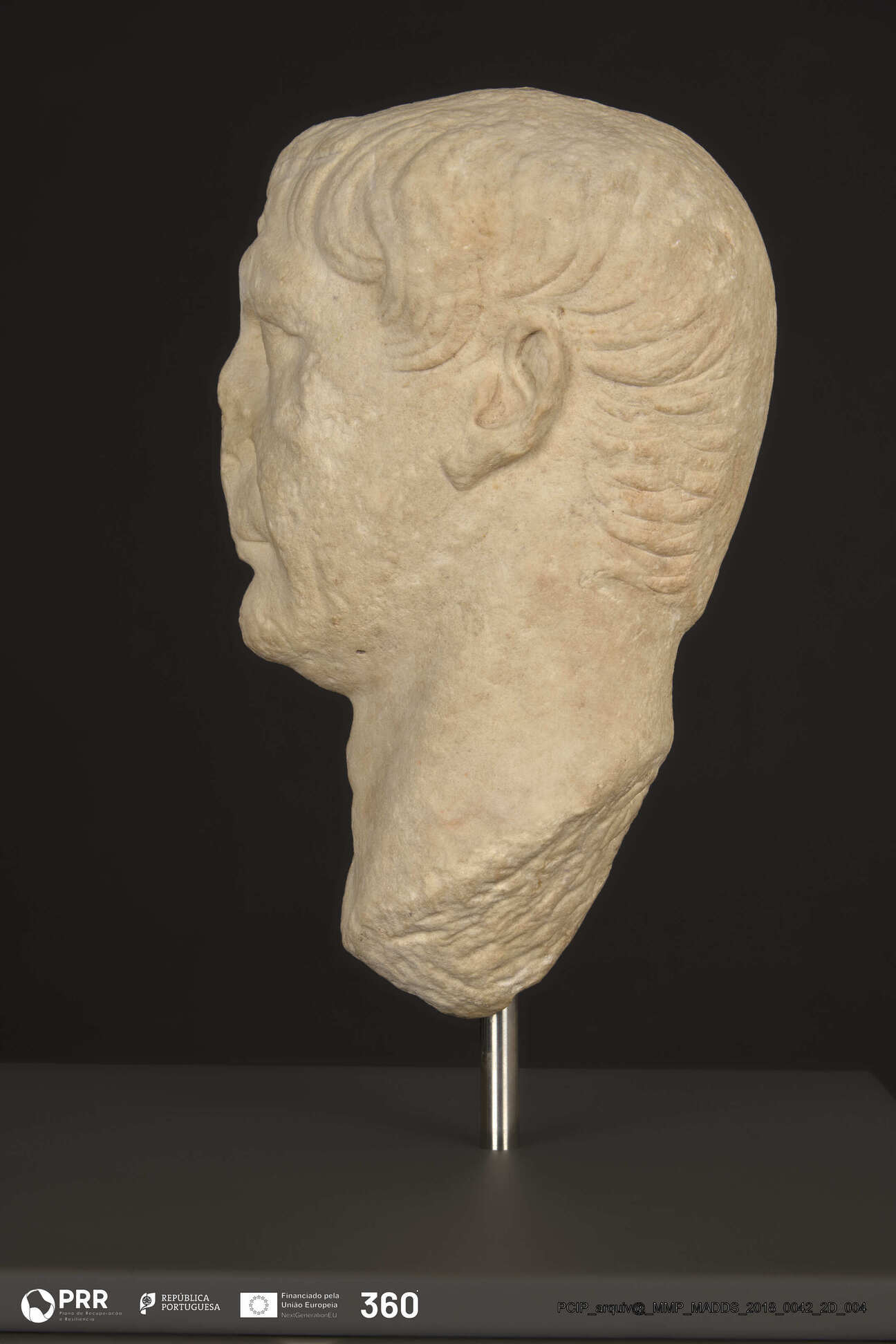 Matéria/Técnica: Mármore; Cronologia: C. de 98 - 117 d.C; Autoria: Desconhecida; Dimensões (cm): 37 x 19 x 21.