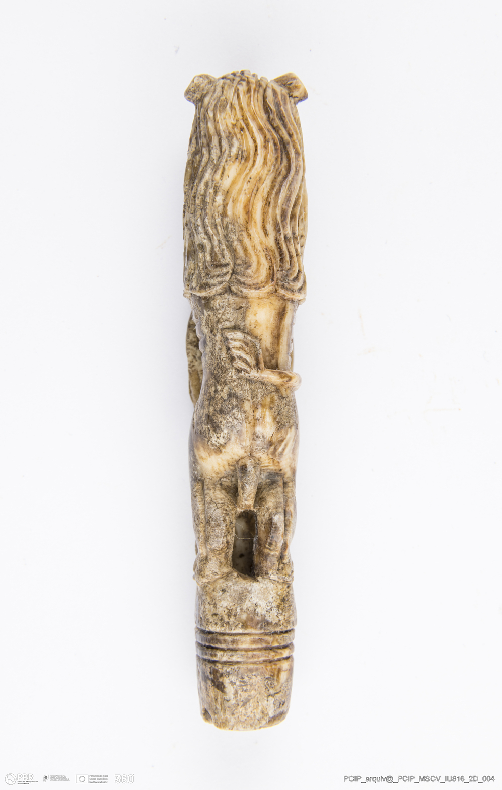Matéria/Técnica: Marfim; Cronologia: Século XVII; Autoria: Desconhecida; Dimensões: Altura: 78mm; Largura: 19mm.