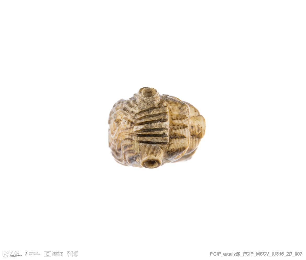 Matéria/Técnica: Marfim; Cronologia: Século XVII; Autoria: Desconhecida; Dimensões: Altura: 78mm; Largura: 19mm.