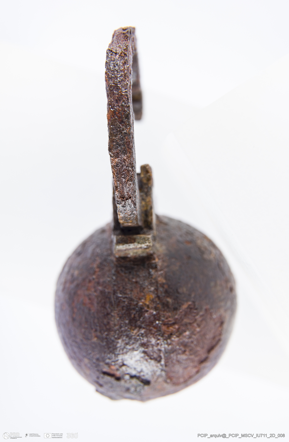 Matéria/Técnica: Ferro; Cronologia: Século XVII; Autoria: Desconhecida; Dimensões: Altura: 68mm; Largura: 46mm; Espessura: 34mm.